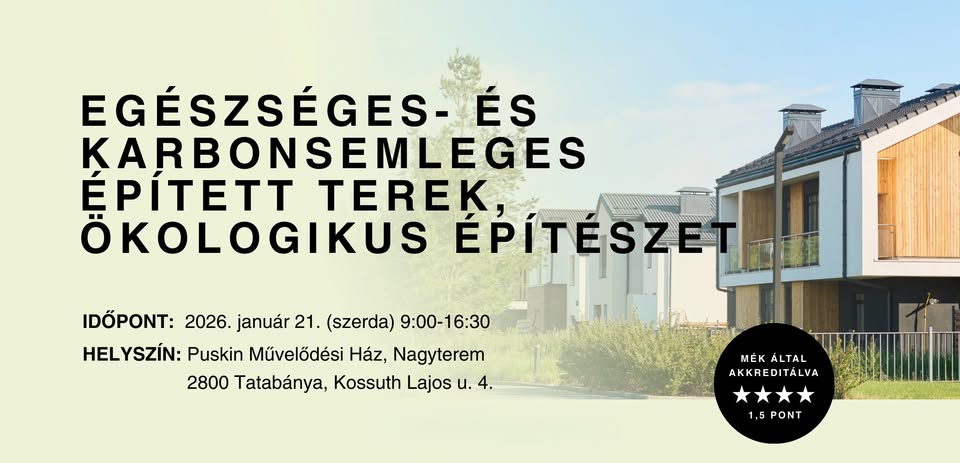 A Komárom-Esztergom Vármegyei Mérnöki Kamara, a KEV Építész Kamara és a Biobaushop Kft. közös szervezésében egész napos szakmai programmal várjuk az érdeklődőket, ahol az ökologikus építészet, az egészséges beltéri környezet és a karbonsemlegesség kerül fókuszba.