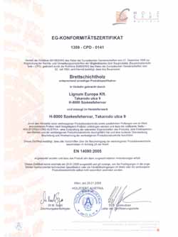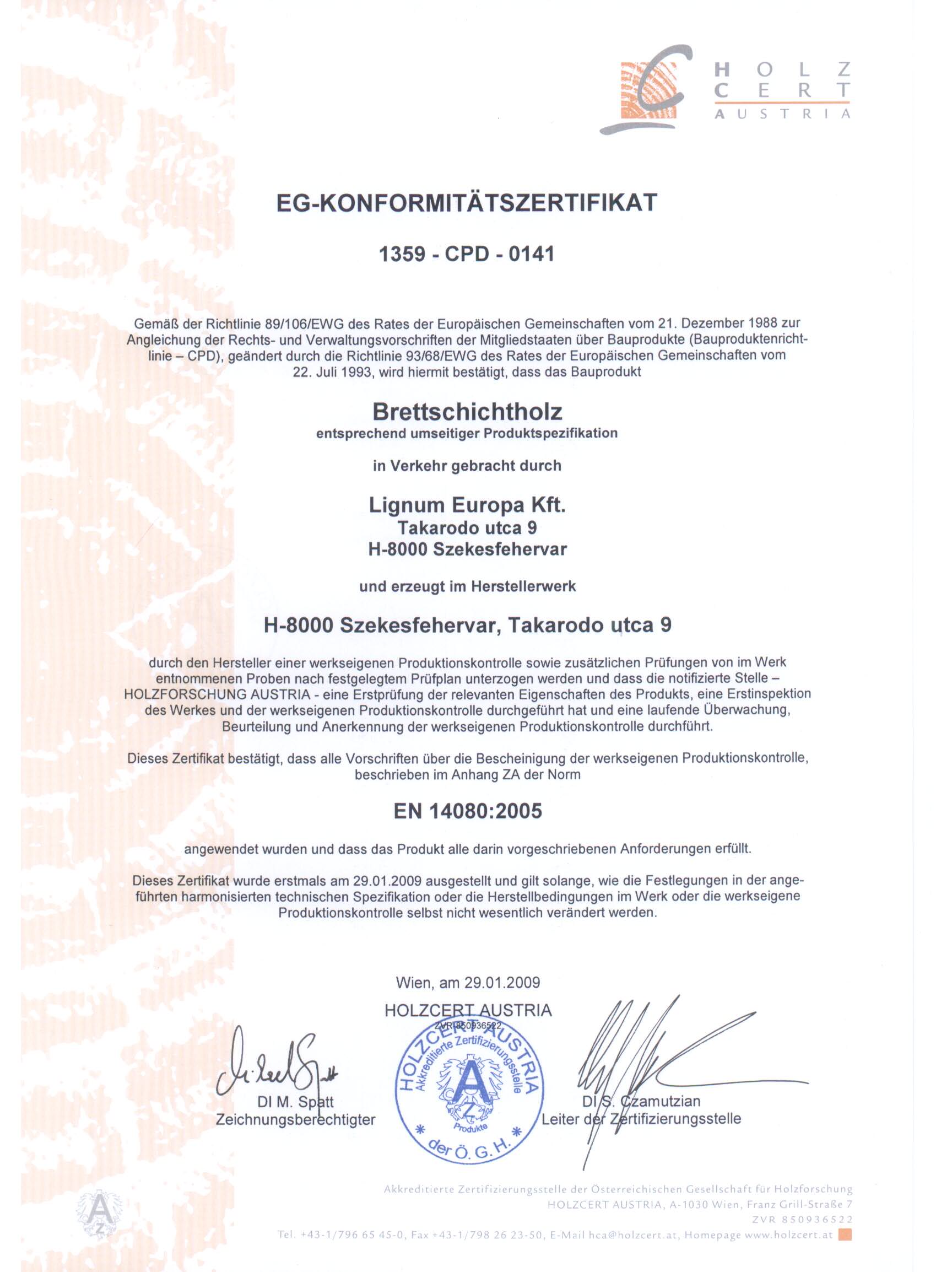 2008. évben nagyobb beruházásokat követően az osztrák Holzforschung Austria több ízben látogatást tett székesfehérvári üzemünkben és segítségükkel előkészítettük RRFA tartószerkezeti elemeket gyártó üzemünket a CE minősítésre. ![]() 2008. decemberében az utolsó próbatesteket is kiértékelték és a gyártás menetét, körülményeit, valamint a terméket minden tekintetben alkalmasnak találták, így az üzemből kikerülő luc-, borovi- és vörösfenyő RRFA tartók 2009-től már viselhetik a CE jelet. Az ÉME minősítés mellett a CE minőségjel még több garanciát nyújt a vásárlóknak és növeli a bizalmat a fa tartószerkezeti termékek iránt!