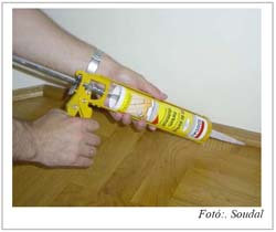 A szétszáradt parketták közötti réseket könnyen kitölthetjük Soudal parkettatömítővel. Ez a tömítő anyag kikeményedés után tartósan rugalmas marad és követni tudja a rések szélességének változásait. A Soudal parkettatömítő egészségre káros hígítókat nem tartalmaz, és a kikeményedés után szükség esetén csiszolható, ezért segítségével lakkozott padlókat is javíthatunk, a lakkréteg elszíneződése nélkül. Új parkettánál is alkalmazhatjuk a parkettatömítőt a rések kitöltésére, mivel festhető és lakkozható.
