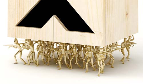 Tervezői fedőneve Daniel Loves Objects, míg a keze alól kikerülő tárgyak formabontó, ironikus és kalandos mentalitást tükröznek. A fiatal szingapúri designer legújabb termékét a katonai leszerelés ellen tiltakozó és fegyverarzenáljukkal hivalkodó államok makacs ellenállása ihlette. Fából faragott könyvespolca akár borospalacktartónak is elmenne, alját pedig csatajeleneteket imitáló aranyozott robotharcosok tartják. Forrás: 4szobamagazin
