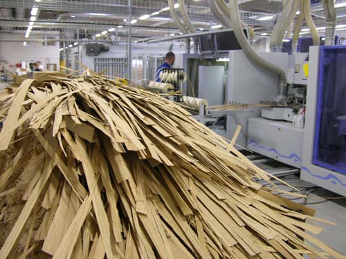 A kihívás Gyakran fellépő probléma furnérozott alkatrészek feldolgozása esetén, hogy a levágott, lemart furnércsíkok eltömítik a gépeket, illetve megnehezítik, esetleg teljesen gátolják az elszívást. A felhalmozódott furnért manuálisan, a gépet leállítva lehet csak eltávolítani a gépházból, amely természetesen termeléskieséshez, alacsonyabb produktivitáshoz vezet. Másik fellépő probléma a fokozott gyulladásveszély. Az átmenő rendszerű, magas előtolási sebességgel működő gépsoron korábban az előtolással megegyező forgásirányú DIA-élmaró szerszámokat alkalmazott a gyártó. E megoldás működőképes is mindaddig, amíg a furnér túllógása csak néhány milliméter, illetve a furnér tökéletesen illeszkedik a forgácslapra. Azonban ha a ragasztás nem egyenletes, vagy a túllógás átlépi a kritikus határt, az élmaró szerszám már nem felel meg a fokozott kihívásoknak, s a leváló furnércsíkok elkezdenek felgyülemleni a gépházban. Ez pedig a már fent említett problémákhoz vezet, amelyre egyetlen megoldás a gép folyamatos tisztítása lehet, aminek időigénye sorozatgyártás esetén komoly kiesést jelent. A probléma előidézéséhez az is hozzájárult, hogy az élmarót az előtolással megegyező forgásiránnyal kellett felszerelni, így a mart furnércsíkok az előtolásnak megfelelően tangenciálisan váltak le, s ez jelentősen megnehezítette az elszívó dolgát, amelynek így nagyban csökkent hatékonysága.