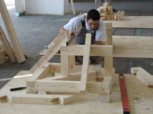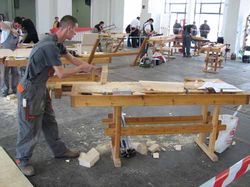 A WorldSkills szabályzata értelmében a Világversenyen huszonkét éves, vagy annál fiatalabb szakmunkások vehetnek részt, ezért az ÉVOSZ által meghirdetett Válogatóversenyre a kőműves, ács, épületburkoló és épületasztalos szakmákban 2007. és 2008 évben rendezett Szakma Kiváló Tanulója Versenyek (SzKTV) első tíz helyezettjei kaptak meghívást. A versenyfeladatokhoz szükséges építőanyagokat a JAF Holz Ungarn Kft., a MAPEI Kft.,Wienerberger Zrt., a Bricostore Barkácsáruház és a Protektorwerk Hungária Kft. biztosította. A legjobb eredményt elérő ács versenyzők számára a JAF Holz Kft., a burkolóknak a MAPEI Kft., az épületasztalosoknak Dancsó János bátorterenyei asztalos vállalkozó, míg a kőművesek számára a Wienerberger Zrt. képviselői adtak át értékes jutalmakat. Az első helyezettek ezen kívül a Magyar Építéstechnika Szerkesztőségének különdíját vehették még át. A versenyfeladatokat és az értékelés szempontrendszerét a pécsi Hanns Seidel Alapítvány és a budapesti Kaesz Gyula Szakiskola munkatársai állították össze. A munkaterület kialakításában, valamint az elkészült versenyfeladatok elbontásban a Kaesz Gyula Szakiskola mellett a budapesti Schulek Frigyes Szakközépiskola tanulói működtek még közre. Az építőipari szakmákban megrendezett válogatóverseny feladat- és munkatervének, valamint értékelési szempontjainak kidolgozásához a Budapesti Kereskedelmi és Iparkamara (BKIK) nyújtott támogatást. A kétnapos válogatóverseny feladatainak elkészítéséhez összesen tizenhat munkaóra állt a versenyzők rendelkezésre, és ez idő alatt a nemzetközi versenyekhez hasonlóan egy gyakorlati feladatot kellett elkészíteniük. A versenyfeladatok és az értékelési szempontok egyaránt a nemzetközi versenyek elvárásainak megfelelően, a korábbi WorldSkills, illetve a tavaly Rotterdamban megrendezett EuroSkills verseny faladatai alapján kerültek összeállításra. A versenyzők munkájának értékelése az egyes feladatrészek elvégzését követően szakaszosan történt. Az érékelési szempontok között a hiányzó méretek pontos és precíz szerkesztése, és kiszámítás mellett a feladat egyes alkotóelemeinek méretre szabása és összeállítása külön - külön is értékmérőként szerepelt. Szakmánként háromtagú zsűri kísérte figyelemmel a versenyzők munkáját, és értékelte teljesítményüket. A zsűri munkájában a támogatást nyújtó anyaggyártó és forgalmazó cégek szakértői mellett a budapesti és pécsi szakiskolák, valamint a Soproni Egyetem és az ÉVOSZ munkatársai vettek részt. A szakmacsoportok zsűrielnökei emellett szakértőként részt vesznek majd a szeptemberi WorldSkills verseny munkájában is. Az ácsoknak egy L-alaprajzú épület sarkán kialakítandó talp- és gerincszelemen rendszerből álló székállást, valamint az ehhez kapcsolódó élszarufa, hajlatszarufa, egész- és csonka-szarufa, illetve a tetősíkba fordított és leszélezett sugárirányú szarufákból álló fedélszék makettjét kellett elkészíteniük. Ehhez egy felülnézeti, és egy profilrajz (keresztmetszetet) állt a rendelkezésükre. Ez alapján előbb a szerkezet valós méretarányú rajzát (zsinórpad), majd a tényleges szerkezet makettjét kellett elkészíteniük. Bár a feladatot a rendelkezésre álló idő alatt egyik versenyző sem tudta teljesen befejezni, azonban egyikük, a Leonardo Program keretében jelenleg a franciaországi Compagnonnál továbbtanuló Bolvári István precíz, pontosan kivitelezett munkájával, jelentős pontkülönbséggel ért el első helyezést. Pontelőnyét azzal is növelte, hogy a zsinórpadját még az első versenynapon szinte hibátlanul elkészítette.