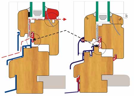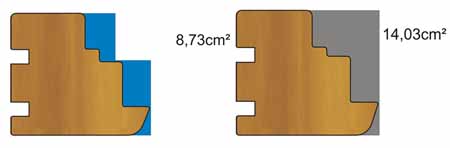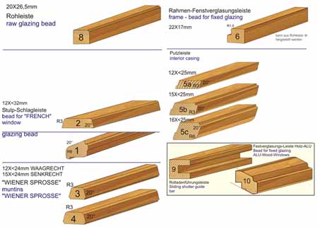 II. Ráfalcolt üvegbeszegező léc Ha már az üvegléceknél tartunk, említést kell tennünk az úgynevezett ráfalcolt üveglécről, mely a hagyományos üvegléctől eltérően rátakar a szárnyra, és így eltakarja a léc és a szárny közötti illesztést. Ez nem csak esztétikai előny, ami abból áll, hogy a gyakran pár év múlva csúnyán szétnyíló rés nem látható, hanem műszaki előnyökkel is jár. A léc és a szárnyalkatrész közötti illesztés ugyanis így jóval zártabb, ami megakadályozza a külső levegő bejutását a páramentesítő nútokon és furatokon, valamint az üvegfalcon keresztül. Ez az előny bizony nem elhanyagolható, ha a legújabban tervbe vett energiatakarékossági irányelvekre gondolunk, miszerint 2012-ig a minősítéshez max. 1,2 W/(m 2K)-es hőátbocsájtást kell elérni a teljes szerkezetre vonatkozóan. A ráfalcolt üvegléc előnye még, hogy már a felületkezelés előtt kész keretek készíthetők belőlük így a lécek sarokillesztései jóval szebbek és zártak. A ráfalcolt üveglécek kialakítása egy további munkalépést igényel. Ez a készre profilozott hagyományos léc falcolása, vagy a nyersen kivett léc többfejes gyalu- és profilozógépen történő készre profilozása. Az utóbbinál az eltérő mélységű lécek gyártása könnyedén megoldható. A nyersen kivett léc további előnye, hogy nem csak (ráfalcolt) üvegléc készíthető belőle, hanem szükség esetén fixesítőléc vagy akár (bizonyos esetekben) ragasztott osztók vagy takarólécek is.