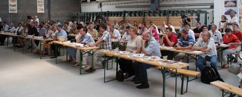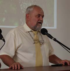 Az üzem működés közbeni megtekintése után Frigy Antal, NFGM, formálisan átadta a MAKÉSZ elnökének az építési termékek jogszerű forgalomba hozataláról közelmúltban véglegesített, új szakmai dokumentumot. Ezt követően Fazekas Péter, a MAKÉSZ vezetőségének tagja, a KAMPA-Trendhaus Kft ügyvezetője, "Az energia felhasználás optimalizálásának fontossága a családi házak tervezésénél " című előadásában bemutatta a jelenlegi építési piacon elérhető technológiák alkalmazásával szerkesztett, a várható üzemeltetési költségeket listázó ártáblázatot. Ezt követően Kárpáti József röviden tájékoztatta a hallgatóságot az igencsak mozgalmasnak ígérkező őszi időszak fontos eseményeiről: Zöld Építészeti Napok, Passzívház Konferencia, Készház Vásár, Készház Konferencia, Lakásenergetikai Érdekegyeztető Tanács (LÉT). Fotó és szöveg: Tóth János, FATÁJ