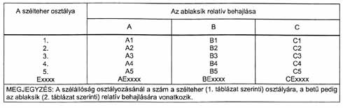 1. táblázat - Az európai osztályok összehasonlítása a régi magyar és a német jelölésekkel. A hétköznapi szóhasználat az ellenállóság jellemzésére a viharálló fogalmat használja. A szerkezet mozgását a behajlás, fogalommal illeti. A műszaki szóhasználat pedig a tulajdonság jellemzésére a szélterhelés, szélnyomás fogalmakat használja. Összefüggésben van a szélállósági jellemző a szerkezet deformációja miatt az ablak vagy ajtó léghanggátlási, hőátbocsátási jellemzőjével. A mérési adatok jelleggörbéjéből következtetni lehet a szerkezet légzárására és vízzárási jellemzőjére, valamint a biztonsági eszközök teherbíró képességére is. A gyakorlati jelentőségét a szélállósági értékeknek és fokozatoknak az adja, hogy egyes épülettípusok, beépítettség mértéke, szélnek való kitettség miatt eltérő elvárásokat támasztunk a nyílászárókkal szemben. A toronyházakba, több emeletes épületekbe szigorúbb feltételeknek is megfelelő szerkezeti megoldások szükségesek, míg egy idényjelleggel használt épületbe egyszerűbb kialakítás is elégséges lehet. Azonban a szerkezetek deformációja hatására a tömítettség megszűnhet és így a fűtési idényben felesleges hőenergia távozik az épületekből.