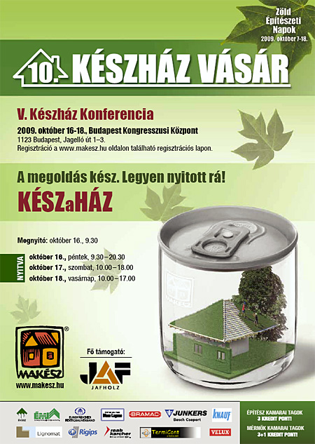Sőt a Készház vásár és Konferencia része a másfél hetes Zöld Építészeti Napoknak, melynek keretében több érdekes helyszít és konferenciát lehet felkeresni.