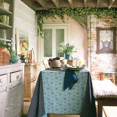 Kulcsszó az egyszerűség, a praktikum. Végtelenül természetközeli irányzatról van szó, amely kedveli az eredeti állapotában meghagyott anyagokat: a nyersfát, a követ, a vesszőből font kosarakat, az egyszerű lakástextileket, a vásznat, a kézi szőtteseket. Mintázatban is a szimpla kockás, a virágos jelenik meg, ezáltal személyes, családias hangulatú lakásbelsők hozhatóak létre, ahol nincsenek szigorú szabályok, a sokféle bútor és kiegészítő jól megfér egymás mellett, a nyitott polcok és tárolók révén szinte kitárulkozunk vendégeink előtt, betekintést adva életünk szinte minden szegletébe.