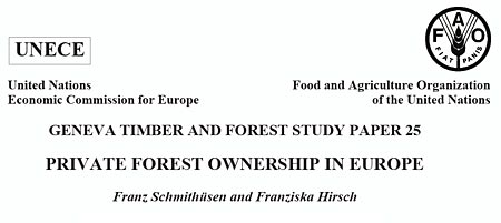 Magánerdő tulajdonlás Európában, UNECE-FAO tanulmány Franz Schmithüsen és Franciska Hirsch a szerzői a 2009. szeptemberében az ENSZ Európai Gazdasági Bizottsága és a FAO közös gondozásában megjelent, a Magánerdő tulajdonlás Európában című tanulmánynak, mely még véglegesítésre vár, de a Fabizottság honlapján már elérhető.