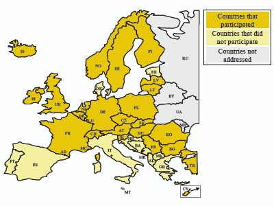 A fenti kép mutatja sötét sárgával a tanulmányhoz adatot szolgáltatókat, világos sárgával a nem válaszolókat és szürkével, akiket meg sem kérdeztek.