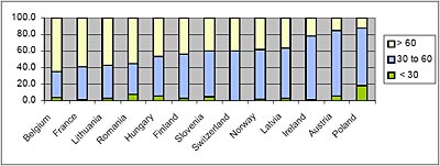A tanulmány számos adatát és megállapítását nehéz lenne e rövid figyelemfelhívó cikkben összefoglalni, így álljon itt csak egy ábra, amely a magánerdők tulajdonosainak kormegoszlását mutatja néhány ország összevetésében.