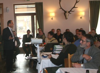 Bartha Dénes, a NymE intézetvezető tanára a magyar erdők természetességéről, az erdőtermészetesség gyakorlati alkalmazásáról beszélt. E szemlélet bevezetése kezdetének felidézésekor elmondta, hogy 1996-ban írt egy tanulmányt a hazai erdők degradáltságáról az Erdészeti Lapokban, amely szakmai körökben kellő felháborodást váltott ki. Azóta nem degradáltságról, hanem az erdők természetességéről beszél. 2002-ben a Széchenyi terv keretében lehetőségük nyílott a természetesség vizsgálatára. Az azt követő években pedig a természetesség fogalmának a bevezethetőségét kutatták. Mire is jók az erdőtermészetességi adatok? Az erdőben uralkodó állapotok rögzítésére, és az összehasonlításra a korábbi állapotokhoz képest. Segítségével erdőállományokat is összehasonlíthatunk. Lehetőség nyílik az üzemmódok összehasonlítására és minősítésére. Az erdőtermészetesség az első minőségi mutató az erdőgazdálkodás történetében. Az előadó szerint a paradigmaváltás egyik alappillére lehet. Napjaink jogszabály-alkotására térve elmondta, hogy az új erdőtörvény 7.§-a 6 természetességi fokozatot sorol fel, a természetes erdőtől az ültetvényig. Az erdő természetességi állapotának minősítését a körzeti erdőtervekben tartják nyilván. A módszer lehetőséget nyújt az erdővédelmi járulék megállapítására. A természetességi mutató ne csupán összetételi adatokat, hanem szerkezeti és működési jellemzőket is tartalmazzon. Ez a mutató a folyamatosságot, a változást tükrözi, ezért ösztönzi az erdőkezelőt. Kérdés még, hogy az új erdőtörvény végrehajtási rendeletében milyen formát ölt ez a módszer. A természetesség megállapítására az erdőtervezéskor kerüljön sor. A felülvizsgálatot az erdőfelügyelők végzik majd. Kérdés, hogy az erdőtelepítések természetességének a megállapítása hogy' történjék. A válasz: a befejezéskor. További kérdés, hogy mi legyen az üres területek minősítésével és a faültetvényekkel. Ez utóbbiak esetében a 15 évnél magasabb vágásfordulójúak jöhetnek számításba. A módszertanról szólva elmondta, hogy három értékelési szint van. Az adattár alapján indikátorok állapíthatóak meg: a faállomány összetétele, a faállomány szerkezete, a cserjeszint és a károsítás. A faállomány összetételét tekintve: őshonos-e, termőhely-honos-e. A szerkezetet tekintve: milyen a záródása, elegyessége, kora, eredete, a keletkezés módja, a holtfa megléte.