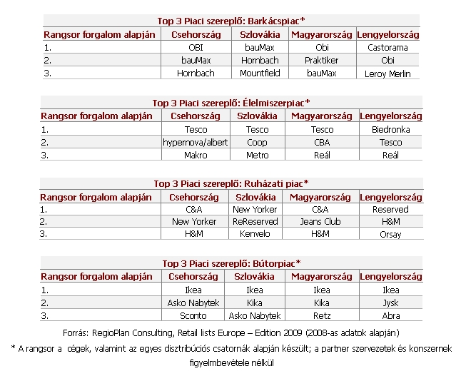 A nemzetközi kereskedelmi láncok egyre inkább kiszorítják a hazai cégeket. Ez különösen igaz a régió fejlettebb országaira, mint Csehország, Szlovákia és Magyarország-, ahol a forgalom alapján vezetnek a nemzetközi szereplők. Csupán Horvátországban és Szerbiában tartják magukat relatív szép számban a hazai cégek az első három között. A növekvő eladási volumennek tulajdonítható a folytonos forgalomnövekedés Kelet-Európa óriási lehetőségekkel bír, hisz ezen a területen több mint 200 millió ember él, a kereskedelem még számos régióban kezdetleges fejlettségi stádiumban van és a vásárlóerő rohamosan nő -, foglalja össze Hanna Bomba-Wilhelmi, a RegioPlan cég-vezetője. A terjeszkedés megfelelő időpontja ágazatról ágazatra változik, mégis egy adott sémát követ. Ahogy a nyomás egyre nagyobb, a rendelkezésre álló idő egyre kisebb, a különböző fázisok pedig egyre inkább összemosódnak.