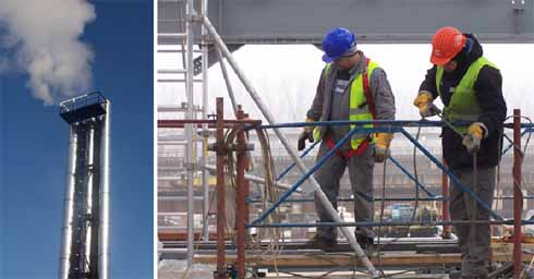 A létesítmény a kiszolgáló berendezésekkel együtt 150 méter hosszú, a kazánház legmagasabb pontja 30 méter. Hosszú távon a debreceni székhelyű Energoszerviz Kft. tavaly áprilisban a beruházó megkeresésére vállalkozott az ajánlatadásra. A cég 1993-ban alakult és a mai napig az egyéb technológiai szerelések mellett több mint száz gőzkazánház létesítését végezte el fővállalkozásban. Munkái között több erőműves beruházás is szerepelt. A vállalkozás több hónapos tárgyalássorozat után, tavaly szeptemberben nyerte meg a munkát. A fővállalkozó a kazánt tartó mintegy 400 tonna acélszerkezet szerelésével, a kazánház építésével és egyéb szakipari munkák kivitelezésével a helyi Mecsom Srl.-t mint alvállalkozót bízta meg. A rendszer nyomástartó részeinek helyszíni gyártását, szerelését és az energetikai szerelést saját kivitelezésben és magyarországi alvállalkozók bevonásával bonyolítja. Jakab László, a társaság ügyvezetője elmondta: a megrendelés után az anyacég létrehozott tíz alkalmazottal egy nagyváradi székhelyű fióktelepet, mivel hosszú távú üzleti lehetőségeket lát Romániában. Forrás: Hajdú Online 01-20