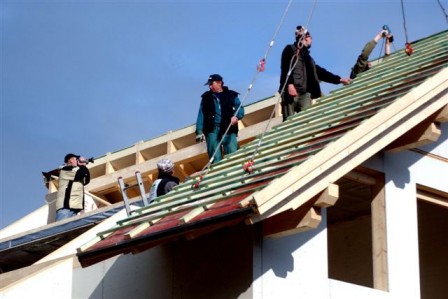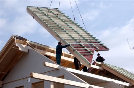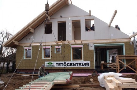 Az új gyártósoron készülő tetőpaneleket kész elemenként emelik a helyére az építkezésen. Az üzemből akár évente 120db egyszintes, 100-150m2-es családi ház is kikerülhet. Passzív házak esetén a tetőszerkezeteknél a legnehezebb megoldani a nagy vastagságú hőszigetelést. Hiszen a falon, a padlóban, lemezalap alatt is egyszerűbb a nagy vastagságú hőszigetelés elérése. Tető esetében már nehézséget okozhat a magasabb szarufa méret beszerzése. Az aktív mintaháznál a tetőszerkezet U értéke eléri a 0,1W/m2K értéket.