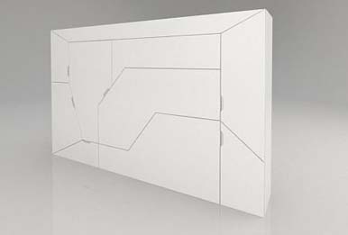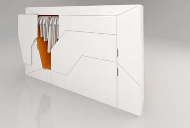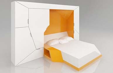 A hálószobafal-konstrukciót, amelybe a gardrób funkció mellett egy franciaágyat is el lehet rejteni. Az ággyal mindjárt az éjjeliszekrényt is egybeépítették, így azzal sem kell külön bajlódni. Az ágy kézzel és távirányítóval is lenyitható, a falegységbe pedig "mennyezeti" és olvasólámpát is beépítettek.