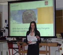 Második előadónk dr. Fukszberger Balázs volt, aki a Pannon Nap Szolgáltató és Tanácsadó Bt. képviseletében érkezett cégünkhöz. Rendkívül informatív módon összegezte a jelenleg futó és az év során várható pályázati lehetőségeket, valamint az azok elkészítésével és beadásával kapcsolatos elvárásokat és azokat a pontokat, amelyek megkülönböztetett figyelmet érdemelnek. Az előadást követően több hallgató négyszemközt kérdezett, egyeztetett vele.