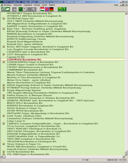 A FAKAT-Komplex.CD adatbázisából sokrétű (31) szempont alapján lehetséges a felhasználó által keresett vállalkozások, illetve azok csoportjainak gyors kigyűjtése, listázása, exportálása, nyomtatása.