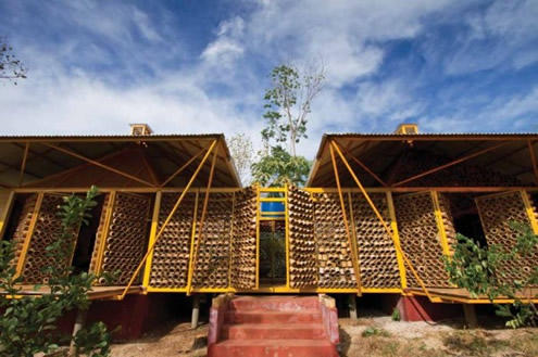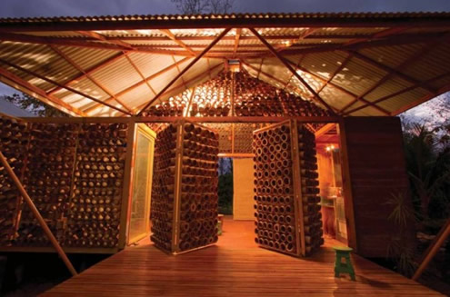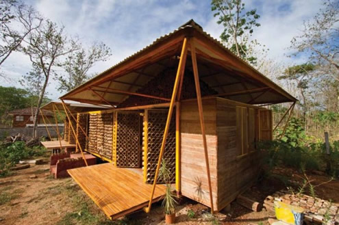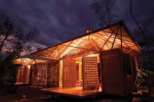 Lakás erdőből és holdfényből Benjamin Garcia Saxe édesanyjának tervezett egy kis házat bambuszból, zsákvászonból, deszkából és a szokásos építőanyagokból (acél, beton, üveg).