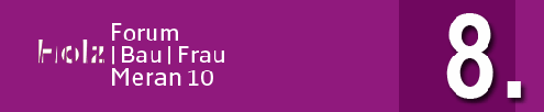 8. Forum HolzBauFrau - Faépítésben és Belsőépítésben Dolgozó Nők 8. Nemzetközi Konferenciája Immár 8. alkalommal rendezik meg a faépítészetben és a belsőépítészetben dolgozó hölgyek nemzetközi szakkonferenciáját és találkozóját, 2010. július 1-2-án, Meranban (Olaszország).