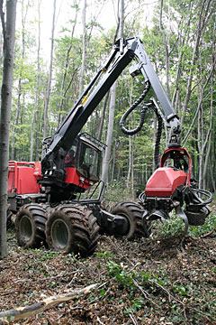 Valmet 911.3-as gép, 360.2-es, keményfához kifejlesztett processzorfejjel. Ezt a harvestert az Ihartű-2000 Erdészeti és Faipari Kft. működteti.