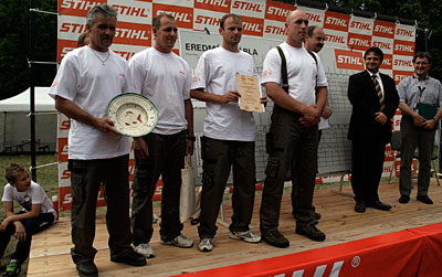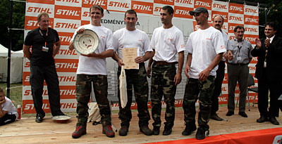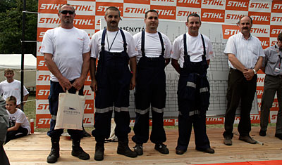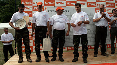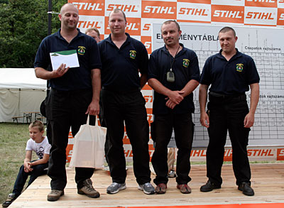Végül kihirdették az I. helyezett csapatot is. Az első a Patent 3H Kft. 1-es csapata lett (600 e Ft STIHL vásárlási utalvány): Lábodi Géza, Lábodi Csaba, Bogdán Róbert, Szűcs János.