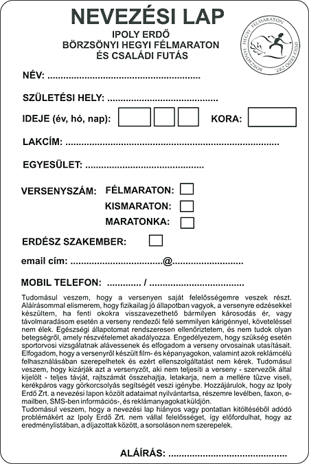 Minden további részletet megtalál a 2010. Ipolyerdő Félmaraton és Családi Futónap oldalán. Előnevezés augusztus 4-ig olcsóbban, utána és a helyszínen drágábban. Ipolyerdő Zrt.