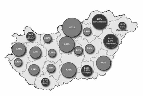 Naponta ötven cég szűnik meg Külön kategória a főváros, hiszen a több mint húszezer végelszámolásnak mintegy fele (10 267) Budapestre jutott; itt a 237 665 cégre eső bezárási arány 4,32 százalékos. További hat vidéki nagyvárosban ez az arány átlagosan 2,84 százalékon áll. Az elmúlt két év alatt a legtöbb végelszámolásra (490) Debrecenben került sor. Miskolcon 438, Szegeden 305, Pécsett 244, Győrben 209, Nyíregyházán pedig 153 végelszámolást folytattak le. A végelszámolási hullám emelkedése nyilvánvalóan szoros összefüggésben van a cégek fizetésképtelenségi mutatójával, ami az első fél évben 26 százalékkal romlott a múlt esztendő hasonló időszakához képest. Fizetésképtelenség miatt naponta átlagosan ötven cég szűnik meg Magyarországon. A válság hatása tehát láthatóan áthúzódott erre az évre is, és nagyon körültekintőnek kell lennie az üzletembernek, amikor partnert választ, megrendelést ad vagy fogad el, ha el akarja kerülni a buktatókat.