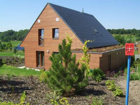 Passzívház példa Csehországból A Csehországi Koberovy városkában, mely egy tájvédelmi körzetben, 430 m tengerszint feletti magasságban fekszik, 13 könnyűszerkezetes épület készült passzívházként, 2005-2006 évben.