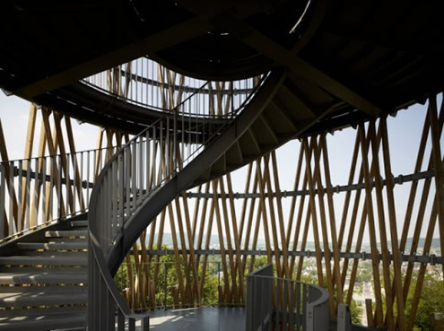 A stuttgarti Birk und Heilmeyer Építésziroda 23,5 méter magas kilátója idén tavasszal készült el Észak-Rajna-Vesztfáliában, a Knippers Helbig Advanced Engineering Mérnökirodával együttműködésben.