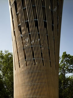 A hiperboloid szerkezet előképeként az építészek Vladimir Sukovnak a 19-20. század fordulóján készült hasonló konstrukcióit jelölik meg. 240 darab 8x8 centiméter keresztmetszetű vörösfenyő stafniból áll a kilátó, ezeket két rétegben helyezték el. Az egymással szöget bezáró rétegekből egy hálószerű struktúra alakul ki, amit vízszintes gyűrűk fognak össze.