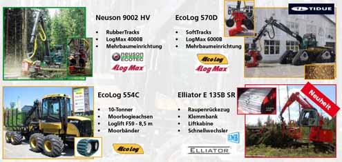 A házi vásáron bemutatott gépek: - Neuson 9002 HV, - Eco Log 570 D Harvester, - Eco Log 554 C Forwarder, - újdonságként Elliator E 135 B SR szorítózsámolyas lánctalpas Forwarder, - különlegességként Tigercat 1135 gumikerekes Harvester.