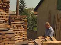 Siklósi úr kezében méterrúd. A mester most is dolgozik. Azon van, hogy ebből a rengeteg nyers fából kiválogassa a megfelelő alapanyagot egy készülő hordóhoz. Mint a legtöbb kádár, ő is csak tölgyből dolgozik, ez a fafajta ugyanis könnyen megmunkálható. Ezt a tulajdonságát tovább javítják azzal, hogy a dongákat a fa kivágása után legalább 18 hónapig állni hagyják. Ezalatt a másfél- két esztendő alatt a nyersanyag számtalanszor megázik és kiszárad. Így a benne lévő olajok eltávoznak.
