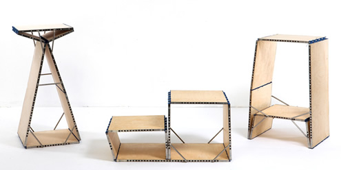 A termék szinte a teljes bútorválaszték megformálást lehetővé teszi. Az összecsukható csuklópántok és a különleges rögzítő forma tetszőleges elhelyezése segítségével minden stabil szerkezeti állapotban más és más bútorforma alakul ki.
