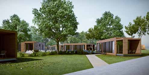 Milyen anyagokból készült? A mobilház teherhordó vázszerkezete két részből áll. Egyrészt egy statikailag és egyedileg méretezett acél alvázszerkezetből, másrészt a szintén méretezett acél felépítmény vázszerkezetéből. A falpanelként alkalmazott kemény poliuretán hab hőszigetelésű szendvicspanel külső fegyverzete 0.5 mm vastag horganyzott acéllemez, belső fegyverzete pedig 12 mm vastag magas fényű fehér bútorlap - normál, illetve vízálló kivitelben, függően a beépítés helyétől. Emellett a panelek élkialakítása lehetővé teszi a légzáró, jó hőszigetelő értékű, hézagmentes szerelést. A falpanelek közé integrált nagy üvegfelülettel rendelkező nyílászárók faszerkezetűek, részben toló és nyíló-bukó vasalattal, illetve fix üvegezéssel. Az üvegezés alaphelyzetben 1.1 W/m2K hőátbocsátású, kétrétegű szerkezet, de lehetőség van 1.0 W/m2K értékű üvegezés alkalmazására is. A hőszigetelt falpanel-rendszer külső felületképzése a megrendelő igényeihez igazítható: lehet szellőztetett légréssel ellátott faburkolat, illetve dryvit rendszerű hőszigetelt felületképzés. Milyen alaptípusai vannak? Jelenleg hivatalosan két altípust különböztetünk meg, de miután egyedi gyártásban készülnek a házak, ennek igazán nincs jelentősége. Annak azonban igen, hogy ugyan még csak a tervasztalon, de elkészült egy a magyar tájba könnyebben illeszkedő nyeregtetős változat is.