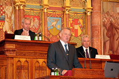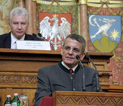 Dr. Semjén Zsolt, (saját honlapja, parlamenti honlapja) a Magyar Köztársaság nemzetpolitikáért felelős miniszterelnök-helyettese az "Erdők és erdészek a Kárpát-medencében" című előadásában áttekintést adott e térség erdőgazdálkodásának fejlődéséről napjainkig. Dr. Bognár Lajos helyettes államtitkár, a Vidékfejlesztési Minisztérium részéről üdvözölte a hallgatóságot a miniszter nevében, majd "Az erdő, mint a legsokoldalúbb erőforrás" c. előadásában jelezte, hogy hamarosan megújítják a Nemzeti Erdő Programot. Az EU átlagánál jobb egészségű erdeinkben sok a védett a Natura 200-re jelölt terület, melyek az erdészek kezében jó helyen vannak. Arra kell törekedni, hogy a közszolgáltatással arányos legyen a támogatás. Az erdő a vidékfejlesztés kiemelt területe, a jövő agráriumának egyik kitörési pontja. A támogatási jogcímeket mielőbb be kell indítani. Ahogy a termőterület negyede erdő, úgy a támogatásokból is ehhez közelítő arányban kell e terület részesedjen. Jakab István, az Országgyűlés alelnöke, az Országgyűlés Mezőgazdasági bizottsága Erdészeti albizottságának elnöke "Nyissuk ki a kapukat az erdőgazdálkodók vidékfejlesztési feladatai előtt" c. előadásában elmondta, hogy az erdőgazdálkodók eddig csak a vidékfejlesztés kiskapuján közlekedhettek. Sok jogcím még 2010. elejére sem nyílt meg. Az erdészet a vidék kiemelt munkaadója. Az erdőgazdálkodók munkahelyekkel megrakott vidékfejlesztési szekerével nem mindegy hogy milyen gyorsan lehet a kapun áthaladni. Az erdőtulajdonosoktól szerinte nem kell védeni az erdőt.