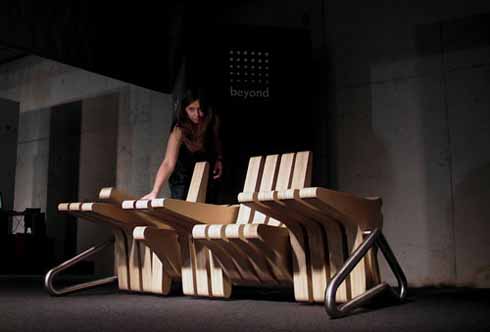 Végtaggyilkos pad-asztal A lengyel BEYOND Standards, amelynek vezetője Karolina Tylka dizájner és Szymon Nawój belsőépítész egy olyan kutatáson dolgoznak, amelynek témája az anyag, a technológia és a tér kapcsolata.