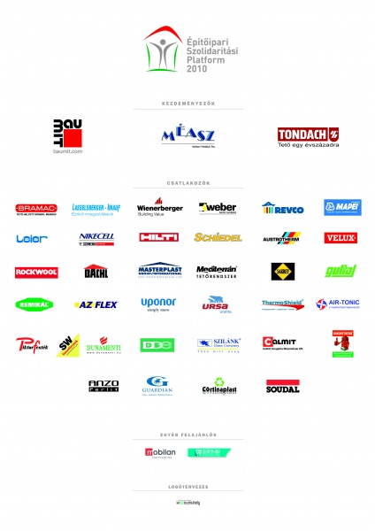 Építőipari Szolidaritási Platform termékek segélyáron Az Építőipari Szolidaritási Platform (ÉSZP) néven életre hívott iparági összefogás 2010. október 8-án azzal a céllal jött létre, hogy a vörösiszap ipari katasztrófa utáni helyreállítási munkákhoz, az újjáépítés és kárenyhítés hatékony megvalósításához nyújtson segítséget.