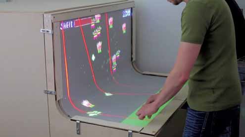 BendDesk - a nagybetűs Munkaasztal Érdekes új variációt alkottak az Aacheni Egyetem média-számtechesei a munkaasztal témájára: vetítőkkel és érzékelőkkel egyetlen hatalmas, többérintéses munkafelületet alakítottak ki egy klasszikus munkaasztalra emlékeztető bútordarab, a BendDesk formájában.