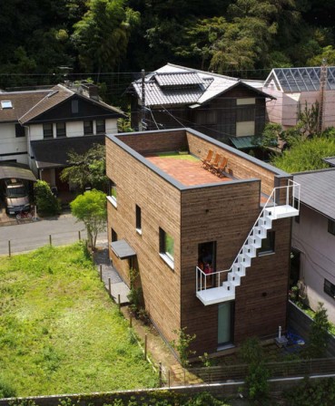 2009-ben épült a szabadonálló beépítésű családi ház, az első minősített passzívház Japánban. Kis területű épületről van szó, csupán 78 m2 az energetikai számításba bevont terület. A fűtést és melegvízellátást hőszivattyú biztosítja, természetesen egy japán márka, mitsubishi hőszivattyú került beépítésre.