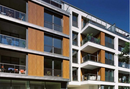 2 többlakásos lakóépület épült Hamburgban passzívházként. A 4 teljes, plusz 1 tetőtéri szintes, 2 lakótömbből álló épületben összesen 34 lakást, és 3 üzlethelyiséget alakítottak ki. Az energetikai számításba bevont terület (fűtött terület): 2538 m2. Vegyes építési rendszert használtak a tervezők. Váltakozik a könnyűszerkezetes, és ún. masszív szerkezet a minősített passzívházban. A fűtési rendszer rácsatlakozik a távhő ellátásra. Lakásonként két fűtőtestet helyeztek el. A hővisszanyerős szellőzőrendszerben fűtő regisztert is alkalmaztak. A PHPP szerinti éves fűtési igény: 15 kWh/m2év.