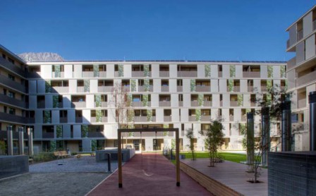 361 lakást építettek az összesen 28.316 m2-nyi, energetikai számításba bevont területre. Az építési rendszer ún. masszív falazat. 18 cm-es vasbeton falazattal készültek a lakóépület tömbök. A vasbeton falra 24-30 cm vastagságban EPS hőszigetelés került. A tetőn 10 cm vastagságban extenzív ültető közeg került kialakításra. Az extenzív zöldtető a nyári túlmelegedés elleni védelemben is szerepet játszik. Lakásonként 3 m2-nyi napkollektor felületet építettek ki. Az összes napkollektor felület éves szinten 367.500 kWh energianyereséget eredményez. 5-6 puffertároló került beépítésre, 2500l-es tartállyal. A melegvíztárolókat körülfújták cellulóz hőszigeteléssel. A melegvízellátásra, valamint a fűtési rendszerre biomassza és gázkazánok segítenek rá.