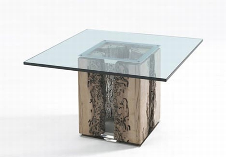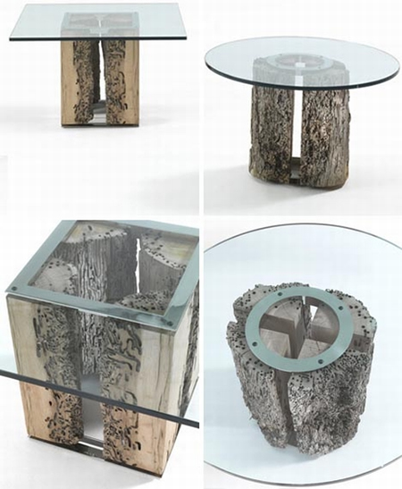 A környezetbarát technológiával dolgozó Riva 1920 stúdió egyedi bútorokat készít a jobb időket is látott fatörzsekből. A dizájnerek nem eltüntetni akarják a féregrágta felületeket, hanem kiemelik azokat. Az asztalokhoz üveglapokat használnak, hogy a bútorok tulajdonosai gyönyörködhessenek a természet munkájában.