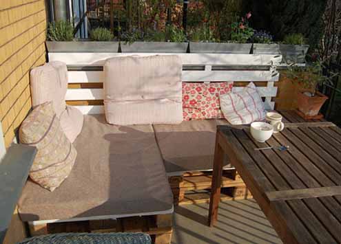 Külső térben még autentikusabb a raklap bútor. Nem kell félteni az időjárás viszontagságaitól, ráadásul néhány párnával felturbózva igazán kényelmes kerti pihenőhelyet kapunk.