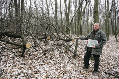 Fülöp András körzeti erdőfelügyelő és Magyari István erdőfelügyelő a térkép és a GPS segítségével azonosították a bejelentő által jelzett területet, de már út közben is nyomokra bukkantunk. A mintegy 100 éves bükkösben itt is, ott is friss vágásfelületű fatuskók jelezték az illegális munka nyomát. - Ennek a 25 hektáros erdőnek nincs túl sok tulajdonosa, 10-15 talán. Azonban a kárpótlás során 50 százalék tulajdoni hányadot kapott egy tulajdonos, aki azóta elhunyt, és a két örököse közül az egyik Svájcban, a másik Szingapúrban él. Ahhoz viszont, hogy itt erdőgazdálkodás induljon, a tulajdon 51 százalékával kellene rendelkezni. Ezt a magyar tulajdonosok sem érik el, a külföldieket valószínűleg nem érdekli, de egymás nélkül nem tudnak tenni semmit. Így most senki sem művelheti az erdőt, nem is felügyelik - magyarázta a legtöbb baj forrását, az osztatlan közös tulajdon egy speciális esetét az erdőfelügyelő, aki megjegyezte, van olyan 40 hektár körüli erdőterület, amelynek 280 tulajdonosa van.