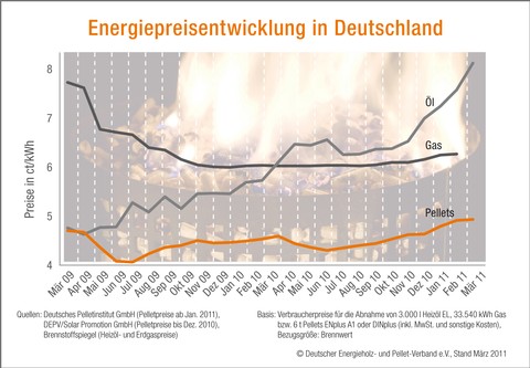- a Német faenergia és pellet egyesület (DEPV) által meghatározott ár az előző hónaphoz képest márciusban is enyhe növekedést mutat, a márciusi ár szerint Németországban átlagosan 242,56 Eurot kell fizetni tonnánként a fa pelletért (ENplusz, A1 vagy DINplusz minőségi tanúsítvánnyal) - februárban az átlag ár 241,45 Euro volt tonnánként, míg januárban a megszabott ár 235,48 Euro/tonna volt, ehhez képest a márciusi átlag ár 1%-os növekedést jelent, Ausztriában ezzel szemben csökkenést mutatnak a pellet árak