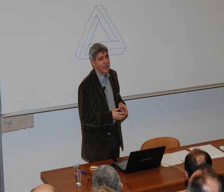Dr. Orosz István, akinek a munkásságát nemrégiben Kossúth-díjjal ismerték el, Szemünk szöge - Az anamorfózisokról a "lehetetlen tárgyak" és az "elrejtett arcok" ürügyén címmel tartott nagyon élvezetes, pergő előadást. A rengeteg ábrával, illusztrált félórás prezentáció elsősorban azokra a "huncut" művészeti alkotásokra koncentrált, amelyek többet rejtenek, mint az első pillantásra nyilvánvaló...
