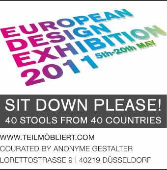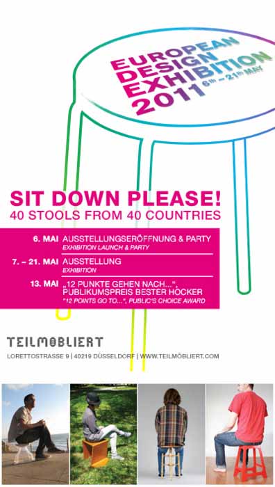 2011 május 7-21.-ig sajátos kiállítás lesz Düsseldorfban (az ugyanott zajló Eurovíziós Dalfesztivál három napja előtt, alatt és után). A szervezők a tévés dalversenyen részt vevő államokból kértek fel tervezőket, hogy készítsenek egy-egy támla nélküli ülőbútort (stool) - azt kutatva, hogy egy tárgy megfogalmazása ugyanúgy megkülönbözteti-e egymástól az országokat, mint a nyelv, a konyha, vagy az eltérő hagyományok.