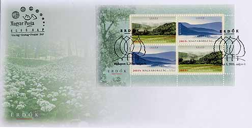 A Posta az erdők védelmére nemcsak e pályázattal, de alkalmi bélyeg forgalomba bocsátásával is emlékeztetni szeretne mindenkit. Az európai postákat tömörítő Post Europ nemzetközi szervezet, minden évben közös bélyegkibocsátásra szólítja fel tagjait. Ezek az úgynevezett EURÓPA bélyegek, minden évben ugyanazon a napon (lehetőség szerint Európa Napján, azaz május 9-én) és ugyanazon témában jelennek meg. 2011-ben a bélyegek témája az ERDŐK és az Erdők Nemzetközi Éve. A Magyar Posta a mai ünnepi esemény tiszteletére pár nappal előrébb hozta e bélyeg kibocsátásának időpontját azért, hogy e két jeles esemény egymást erősítve vigye az erdők védelmének üzenetét. A Magyar Posta legújabb bélyegét Steven Lovy művészfotóinak felhasználásával, Benedek Imre grafikusművész tervezte. A bélyegkisívben 4 db bélyegkép látható, mely kétféle bélyegképet tartalmaz: az egyiken nyárvégi párás őrségi erdőrészlet, előtérben színpompás réttel, míg a másik bélyegképen a Visegrádi-hegység ködös téli hegyvonulatai fedezhetők fel. A keretrajzot egy fa lombkoronája, illetve az alnyomatot a falevél erezete díszíti. A kisív a Pénzjegynyomdában ofszet eljárással, 150.000 példányban készült.