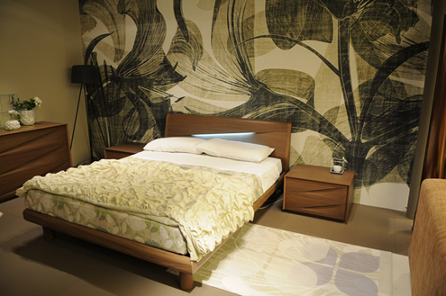 A színek után ma kicsit a formákról és az anyagokról szeretnék szólni. A szigorú, letisztult szögletes bútorok között erősen nyomulnak a játékosabb organikus formák, amelyek ráadásul nem is mindig szabályosak. Itt egy kicsi ív, ott egy kicsi hajlítás, a derékszög már nem trendi, mondanám, hogy itt az organikus minimalizmus, ha ez nem lenne ellentmondás. Ráadásul ezek a mozgalmas formák mindig erőteljesen színesek is, úgyhogy duplán hívják fel magukra a figyelmet. Az ágyak esetében megfigyelhető, hogy egyre jobban hódít a kárpitozott megoldás, néhol erős, néhol pasztell színekben. Továbbra is jelen vannak a természetes anyagok és a régi kézműves technikák újraértelmezése. A kanapék sem szigorúan szögletesek már és a székek is lágyulnak. Egyedül a fali szekrények, polcok és komódok örzik még a szigorú szögletességet, egy-két üdítő kivétellel. És akkor most beszéljenek a képek helyettem:
