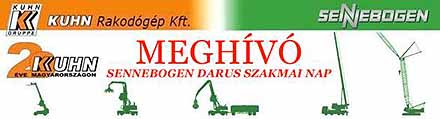 A KUHN Rakodógép Kft. ezúton hívja meg Önt gépbemutatókkal egybekötött Sennebogen Darus Szakmai Napjára, 2011. május 25-re, Budapestre, a cég székhelyére.